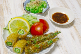 オクラ 地産地消レシピ オクラの土佐揚げ & 豚肉巻き揚げ 野菜ソムリエレシピ さっぱりなすのヨーグルト味噌和え 地産地消レシピ オクラとかまぼこの酢の物 野菜ソムリエレシピ オクラのコロコロ揚げ 野菜ソムリエレシピ オクラと豆腐のふわふわ揚げ 野菜ソムリエレシピ 丸ごとオクラのさっぱりお浸し 野菜ソムリエレシピ レンジで簡単!ふわっと鶏バーグ とれたてキッチン 【第42回牛乳・乳製品利用料理コンクール優秀賞作品】夏野菜と鶏肉の牛乳マリネ 野菜ソムリエレシピ ふわっとお好み焼き 地産地消レシピ サクッとナスのかき揚げ とれたてキッチン ダイコンのスープ煮 地産地消レシピ オクラのカラフル酢の物 地産地消レシピ 2015年8月:オクラハンバーグ【動画】